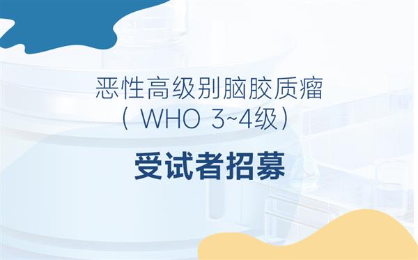 現招募符合以下條件的惡性高級別(WHO 3~4 級)腦膠質瘤患者: