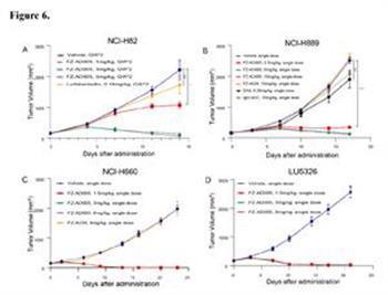 该药物在动物体内展现了强效的抗肿瘤活性,起效剂量低于1.5mg/kg,并且体内血液循环稳定,同时在猴体内重复给药未观察到间质性肺炎(ILD),安全性极佳。基于该药物的分子特征、药物作用机制以及抗肿瘤的药理毒理特征,在治疗小细胞肺癌(SCLC)模型中显示出敏感的抗肿瘤活性,未来有望改善SCLC的治疗现状。
